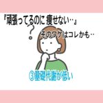 2022年9月13日 / 最終更新日 : 2022年9月13日 cherir ブログ なかなか痩せない理由🌀③ 【基礎代謝】とは‥ 呼吸など生命維持活動をする際に 放出されるエネルギーの事✨✨ 特に運動などしなくてもカロリー消費できる力💪 やっぱり高い方が嬉しいですよね💓 食事で摂取したカロリーは 代謝として体外に排出される仕組み […]
